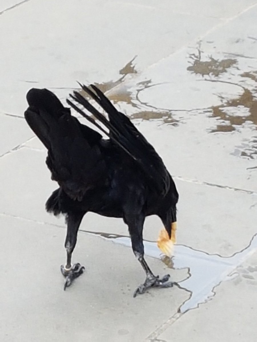 Jubilee washing food. I often tell how ravens do this so here's an action shot! @ravenmaster1